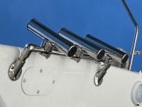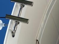Here are some pictures of a rod holder for the arch that I fabricated with some standard SS pipe and fittings. It was very easy to do and work